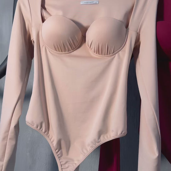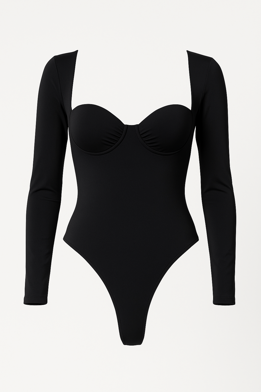 Body elaborado en licra poliéster de alta calidad. Su estructura ofrece ajuste ceñido al cuerpo sin generar transparencias. Escote corazon con cargaderas anchas para mayor soporte, mangas largas . Espalda cerrada.