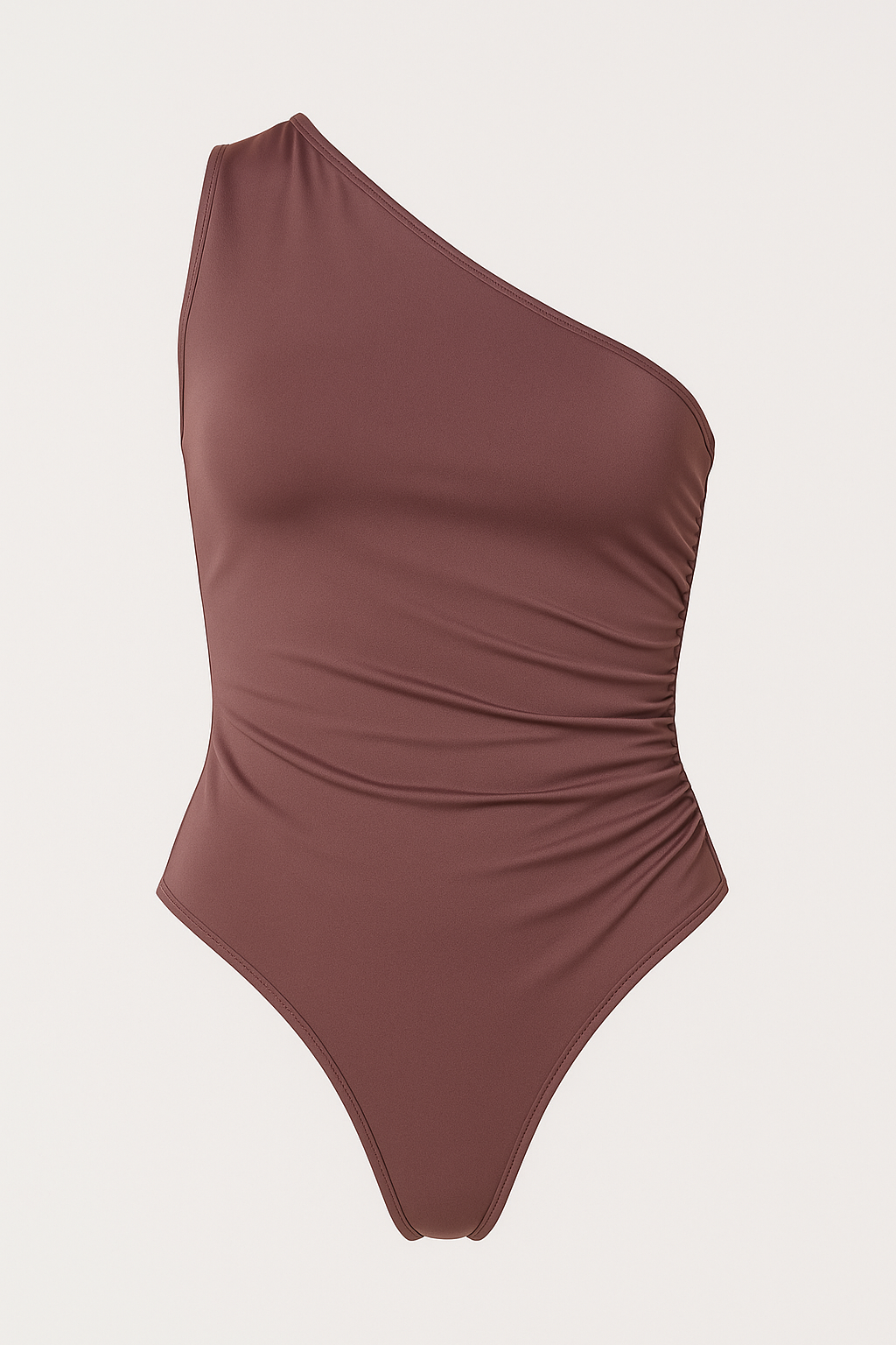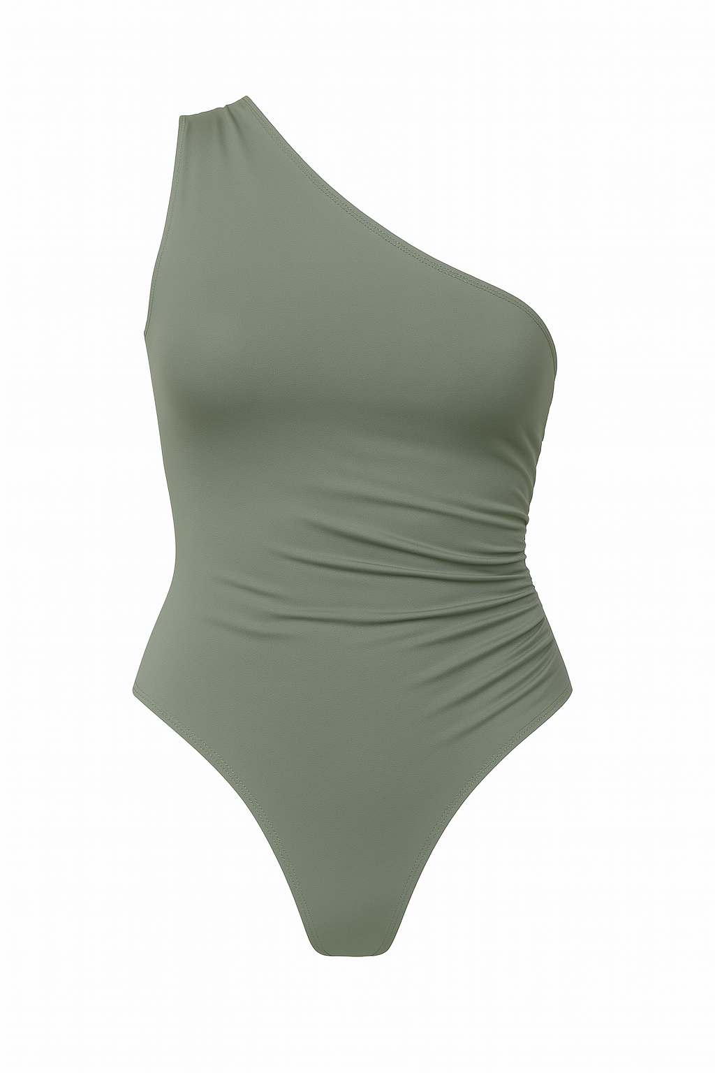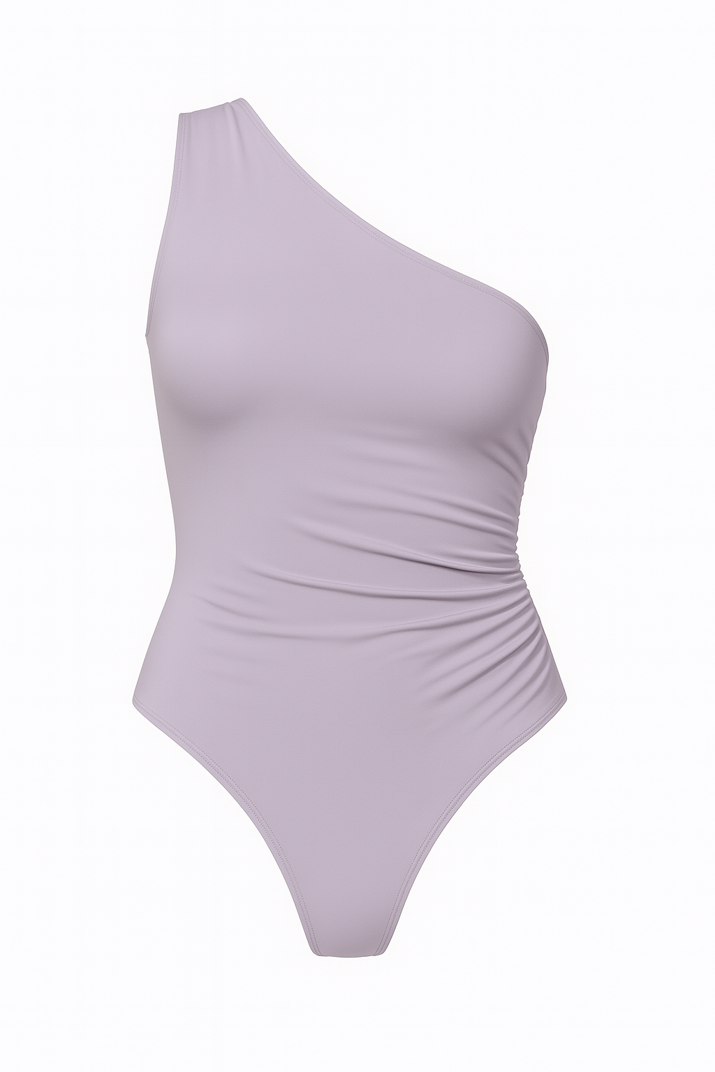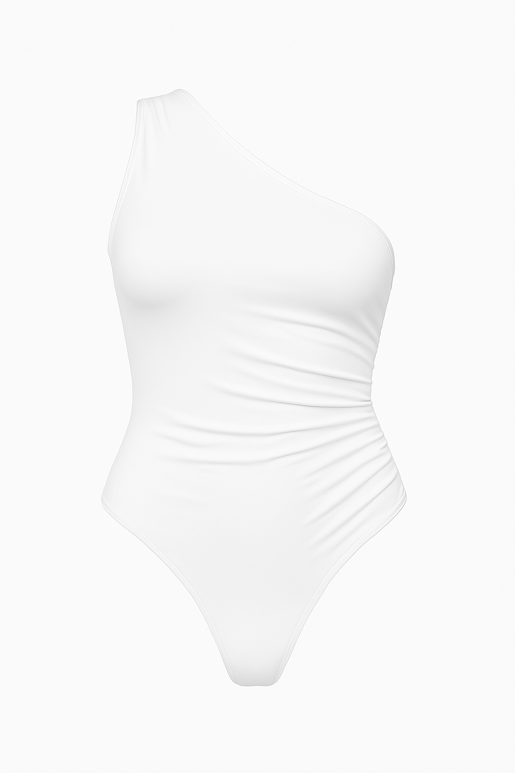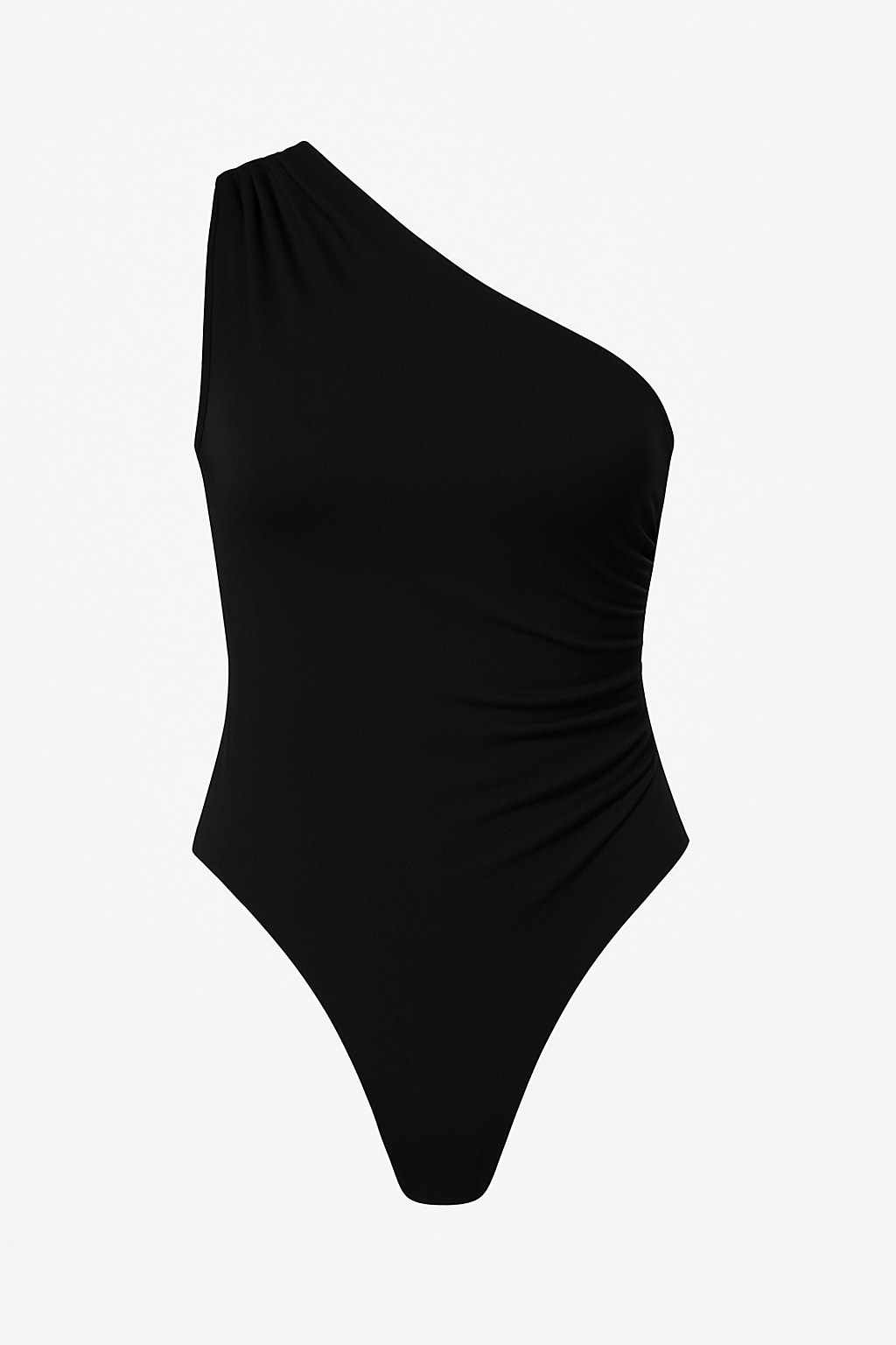 Body asimétrico confeccionado en licra poliéster de tacto suave y ajuste perfecto al cuerpo. Diseño de un solo hombro que realza el escote con un efecto moderno y sofisticado. Frunces estratégicos que estilizan la figura. Parte inferior tipo tanga con abrochadura ajustable para mayor comodidad y practicidad.