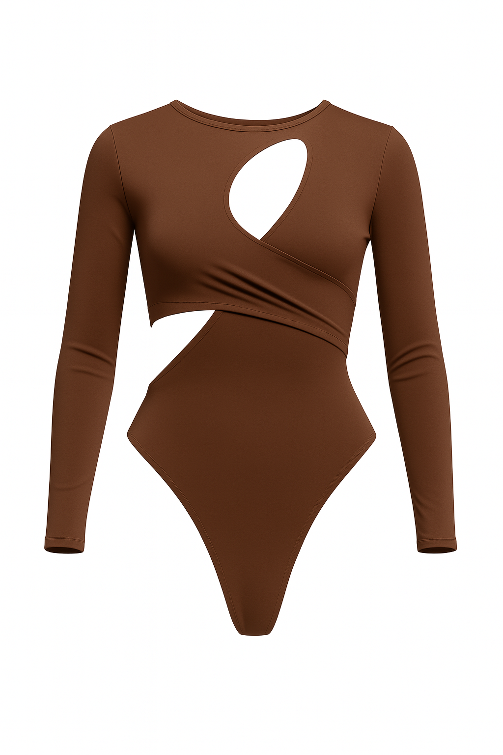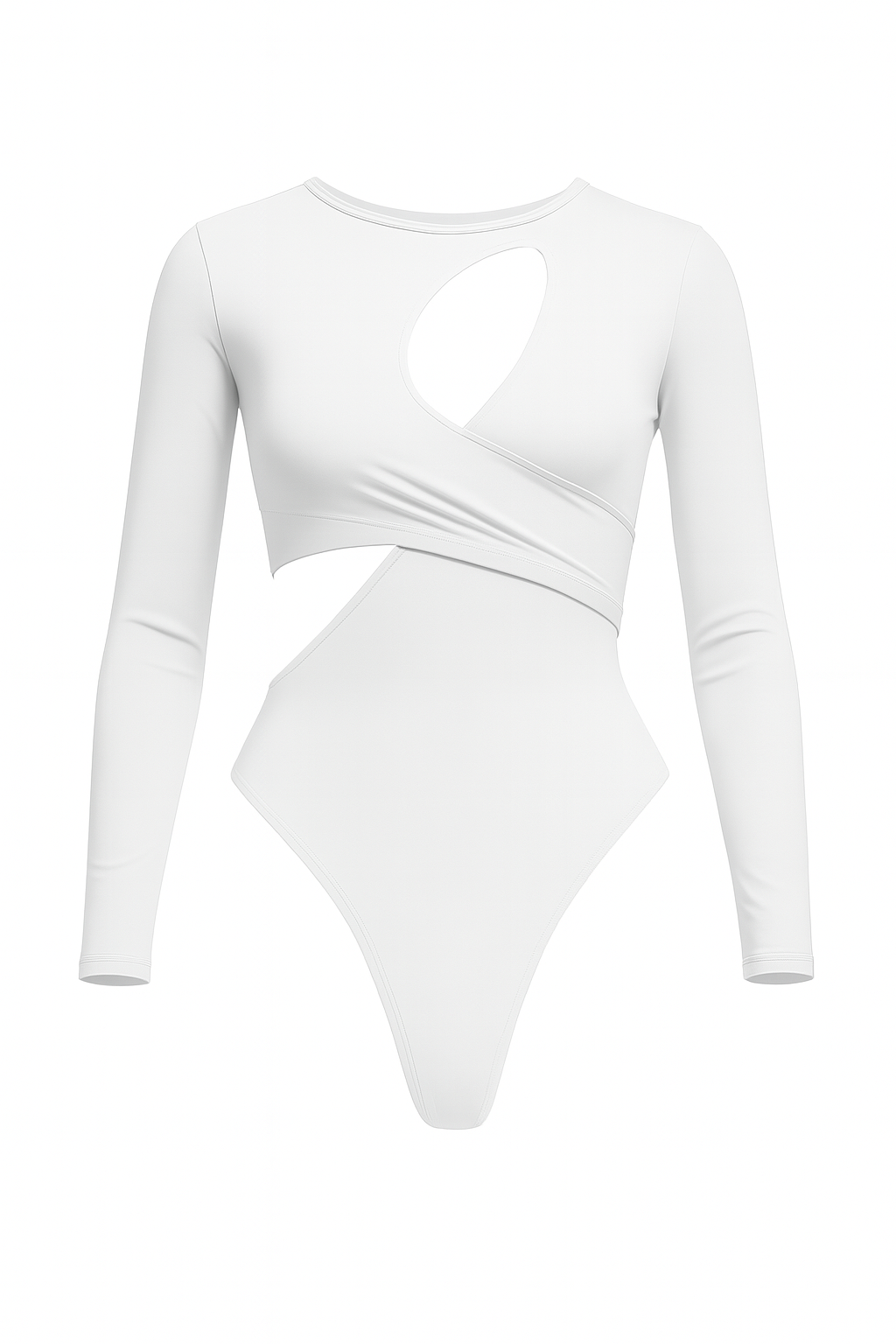 Body de mangas largas, cuello redondo, escote delantero y corte en costados.