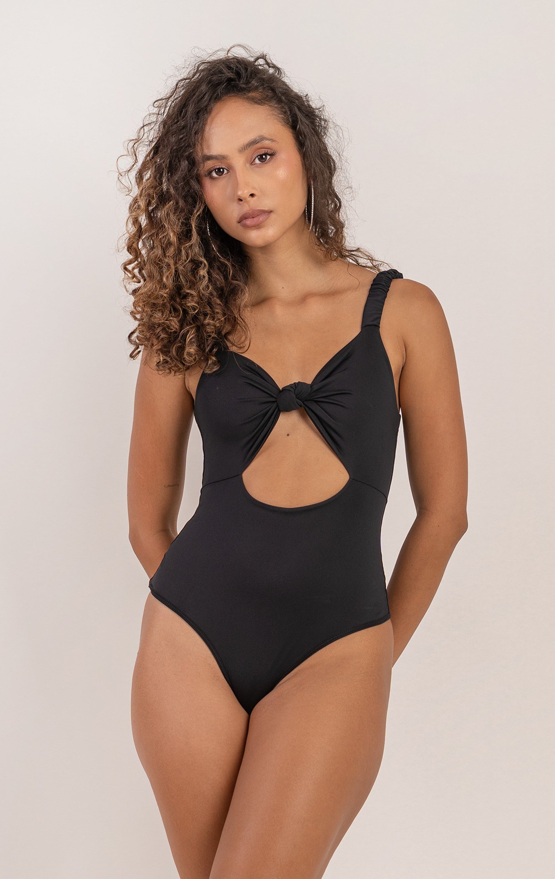 Body de tiras con arruchados y torsíon delantera tipo moño.