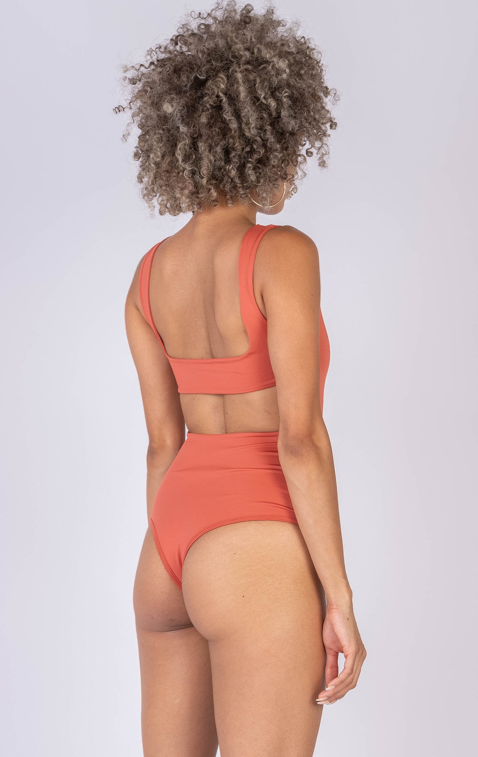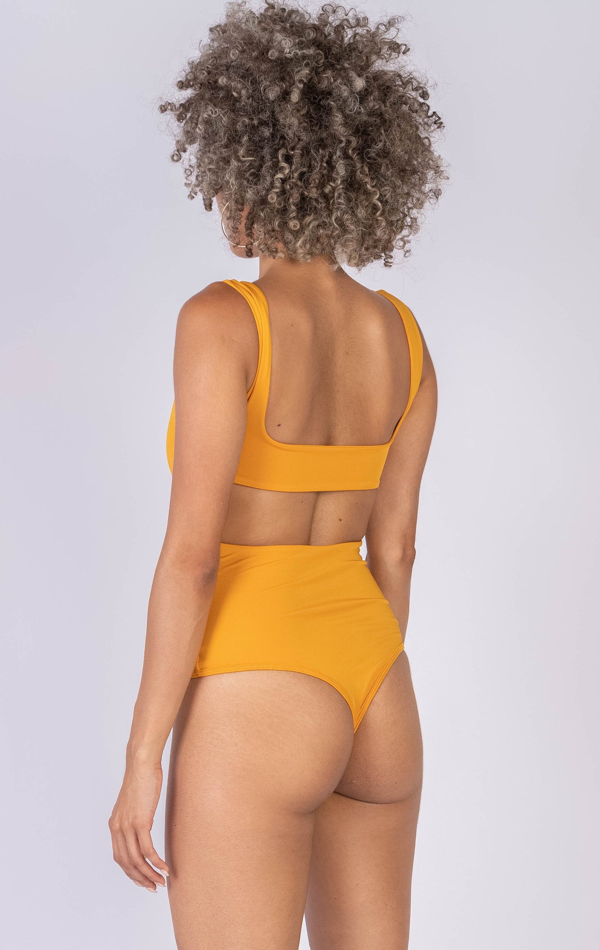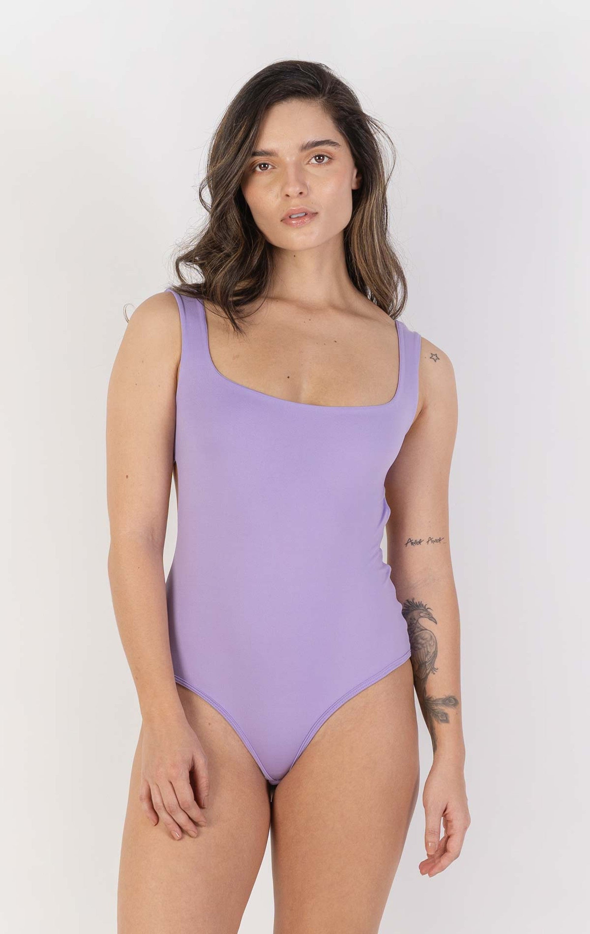 Body con tirantes, escote cuadrado delantero y escote con tiras en la parte posterior.