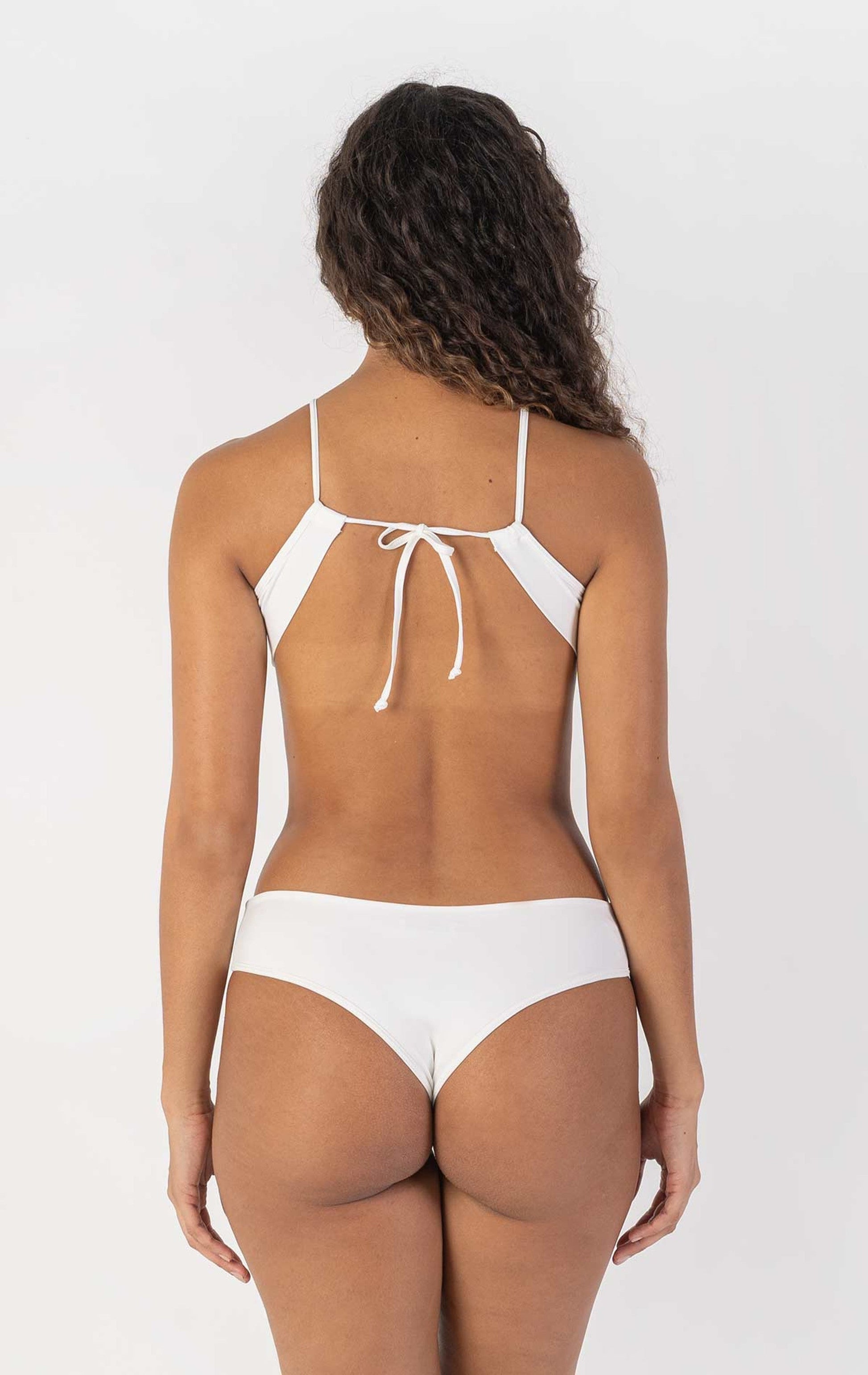 Body en licra poliéster. Su estructura tipo strapless con cargaderas cruzadas al cuello crea un escote halter con abertura central tipo lágrima, ideal para estilizar el torso y centrar la atención en el escote. Los cut-outs laterales profundos delinean la cintura y dan un efecto visual de reloj de arena. La parte inferior tipo tanga con abrochadura ajustable asegura comodidad y practicidad sin sacrificar diseño.